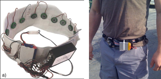 触觉皮带:在朝北时蜂鸣器会发出声响,可使人拥有方向感(声音信号转换为方向信号)。