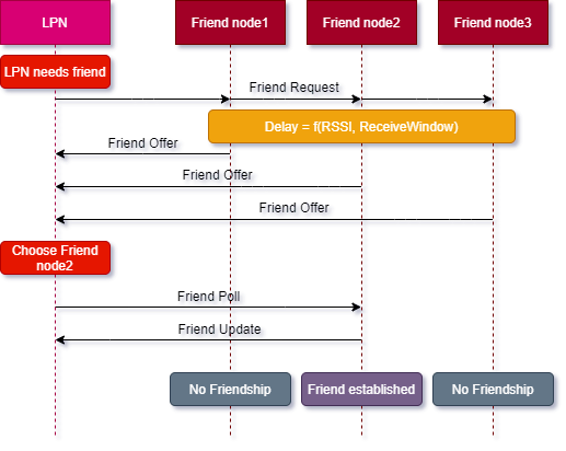 | 0x04 | Friend Offer | Sent by a Friend node to a Low Power node to offer to become its friend |