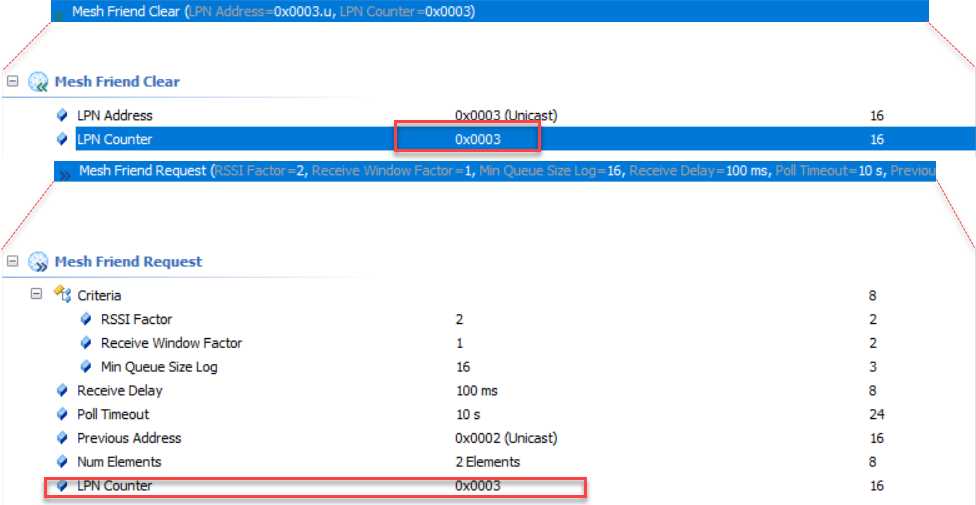 | LPNCounter | 2 | Number of Friend Request messages that the Low Power node has sent |