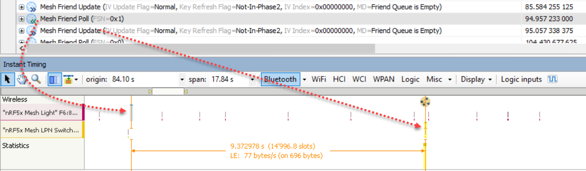 该参数就表示当友谊关系建立之后,LPN向朋友节点发送Friend Poll的间隔时长;那么问题来了:“这个间隔应该设置为多少才适合?是否可以随便设置?” 在开始讲解这个之前,小编先给大家看个图: