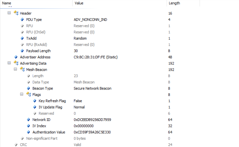 Authentication Value = AES-CMAC BeaconKey (Flags || Network ID || IV Index) [0–7]