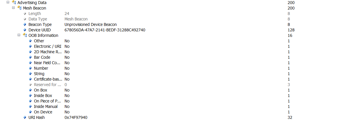 表示当前的设备还是unprovisioned状态,等待加入相应的mesh网络,即Unprovisioned Device beacon