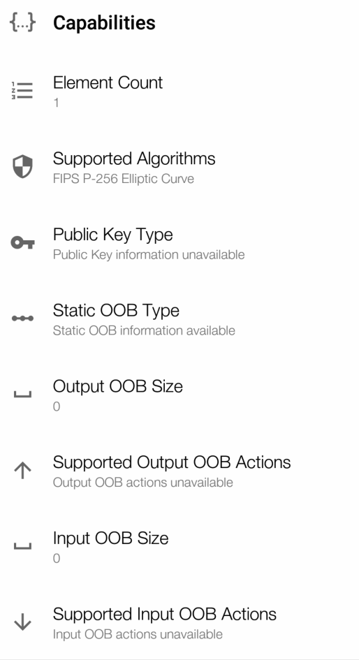 xxxxxxxxxxnrf_mesh_prov_oob_caps_t prov_caps ={ ACCESS_ELEMENT_COUNT, NRF_MESH_PROV_ALGORITHM_FIPS_P256EC, 0, NRF_MESH_PROV_OOB_STATIC_TYPE_SUPPORTED, 0, 0, 0, 0};