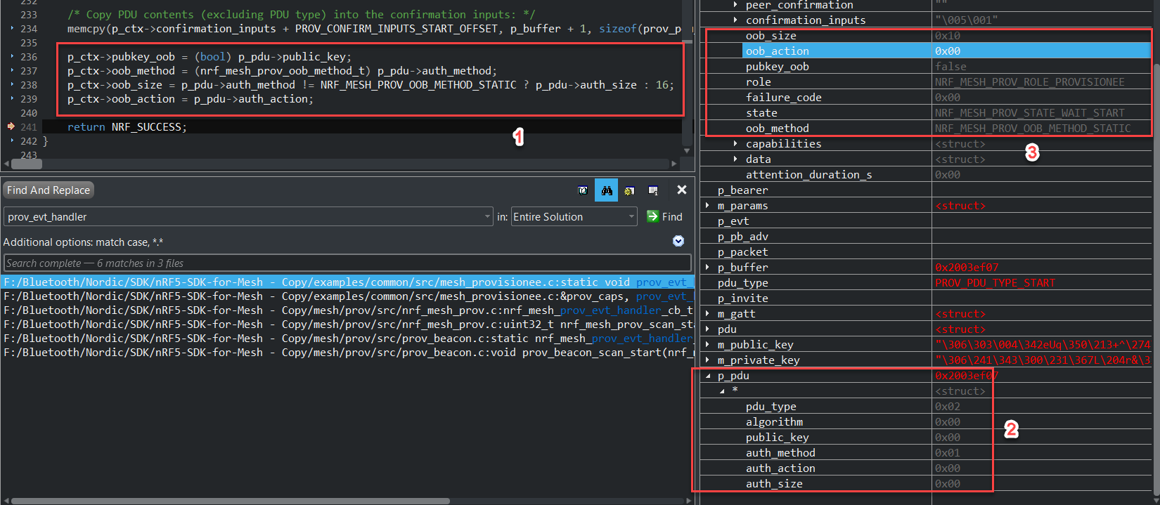 继beacon信号出来之后,接下来provisioner捕获到unprovisioned beacon之后,就要开始发出邀请等一序列的操作。那么Nordic Mesh SDK又是在哪里处理并响应这些事件呢?同样的,让我们带着这样或者那样的疑问来看看下面的事件回调函数: