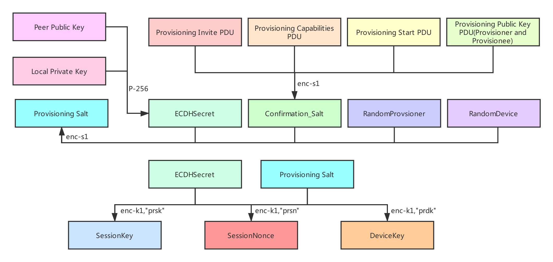 现在我们再看这个PDU时,我们就可以很好的理解了甚至有种豁然开朗的感觉。此时,当收到provisioner的random值后,就会利用该值计算出confirmation value并且与接收到对比,如果对比成功,则开始分发网络秘钥等相关的入网通行证内容;否则,告诉应用层入网失败的原因。