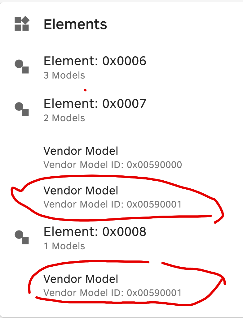 xxxxxxxxxxfor(uint8_t i=0;i<CLIENT_MODEL_INSTANCE_COUNT;i++){ m_hx_model_client[i].p_callbacks = &client_callbacks; uint32_t status = hx_model_client_init(&m_hx_model_client[i],i+1);__LOG(LOG_SRC_APP, LOG_LEVEL_INFO, "HX Model Initializing and adding client model[%d] is %d\n",i, status);}其中,CLIENT_MODEL_INSTANCE_COUNT宏为2,因为我们需要将两个完全相同的模型添加至不同的元素下;如果返回的状态值为0即说明模型增加成功,否则失败;至于,操作码所映射的回调函数也成功映射了,这就意味着当接收到对应的操作码时,其映射的回调函数就会被协议栈向应用层上抛;最终的效果就同上述描绘的图;