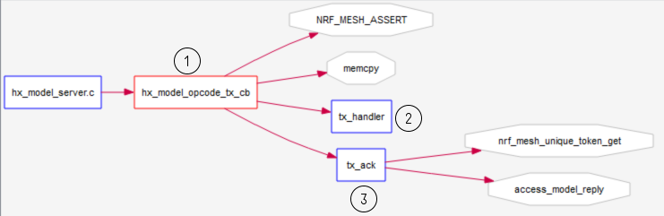 xxxxxxxxxx/***************************************************************************** * 操作码与其对应的回调函数的映射 *****************************************************************************/const access_opcode_handler_t m_server_opcode_handlers[] ={ {ACCESS_OPCODE_VENDOR(HX_MODEL_CLIENT_OPCODE_TX, SERVER_COMPANY_IDENTIFIER), hx_model_opcode_tx_cb}, {ACCESS_OPCODE_VENDOR(HX_MODEL_CLIENT_OPCODE_GET, SERVER_COMPANY_IDENTIFIER), hx_model_opcode_get_cb}, {ACCESS_OPCODE_VENDOR(HX_MODEL_CLIENT_OPCODE_TX_UNRELIABLE, SERVER_COMPANY_IDENTIFIER), hx_model_opcode_tx_unreliable_cb}};这里也就是很多读者叨叨念的想要传送出去的自定义数据内容,针对 HX_MODEL_SERVER_OPCODE_RX和HX_MODEL_SERVER_OPCODE_STATUS两个操作码,其携带消息的处理函数如下: